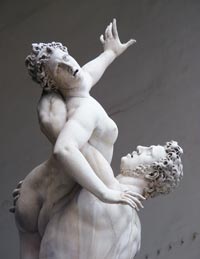 He delighted in solving the complex spatial problems of three intertwined figures in his famous Rape of the Sabine Women (1574–82). The subject was not finally determined until after it had been set up in the Loggia dei Lanzi in Florence's Piazza della Signoria. Heracles beating the Centaur Nessus (1599) is also a conscious tour de force.[4] It is also in the Loggia dei Lanzi.