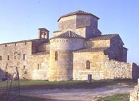 La chiesa si presenta com eun edificio a unica navata con transetto sporgente. La parte presbiteriale presenta tre absidi, minori quelle laterali e più grande quella centrale.
